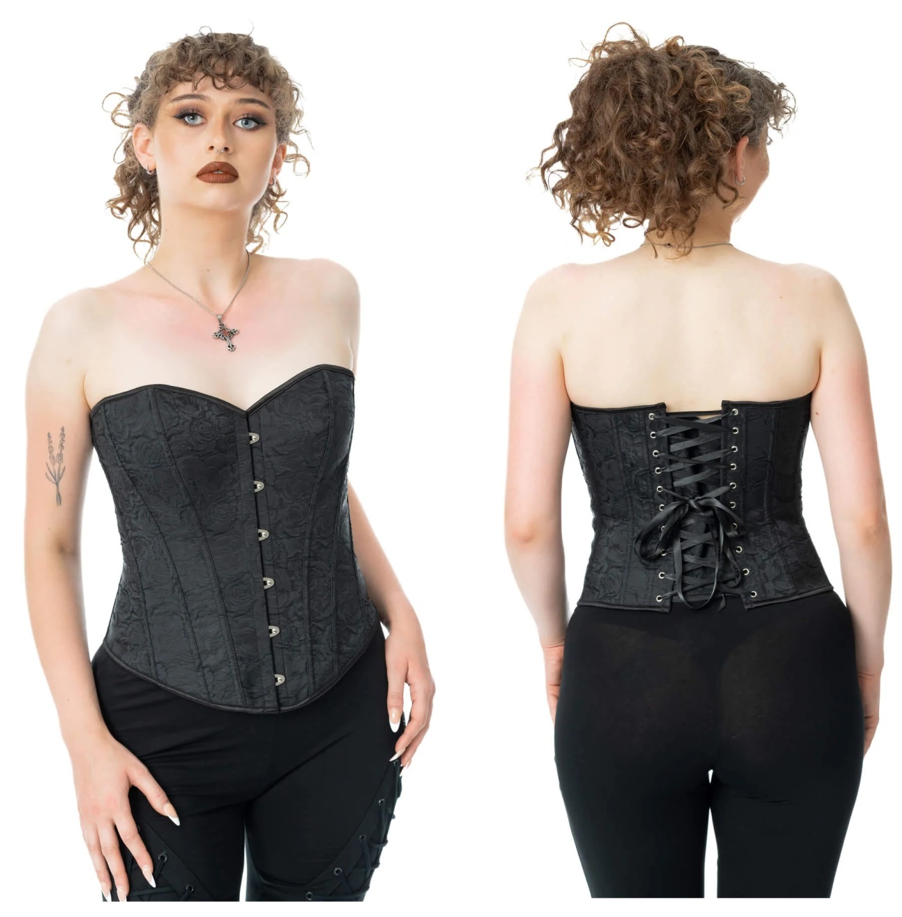 Korsage mit leicht stützenden PVC Stäben, floralem Muster, sowie rückseitiger Schnürung.