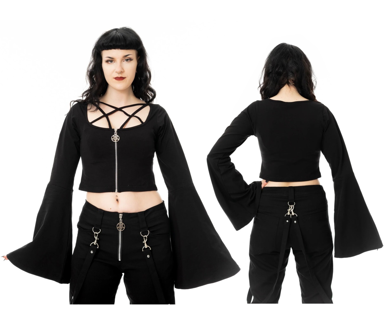 Kurzes Top mit Glockenärmeln und Reißverschluss vorn.