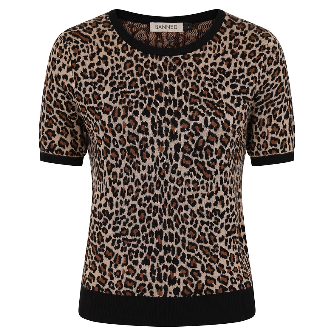 Stricktop im Jacquardmuster mit halblangen Ärmeln. Perfekte Mischung aus Vintage-inspiriertem Stil und wildem Animal-Print für Retro-Mode-Fans.
