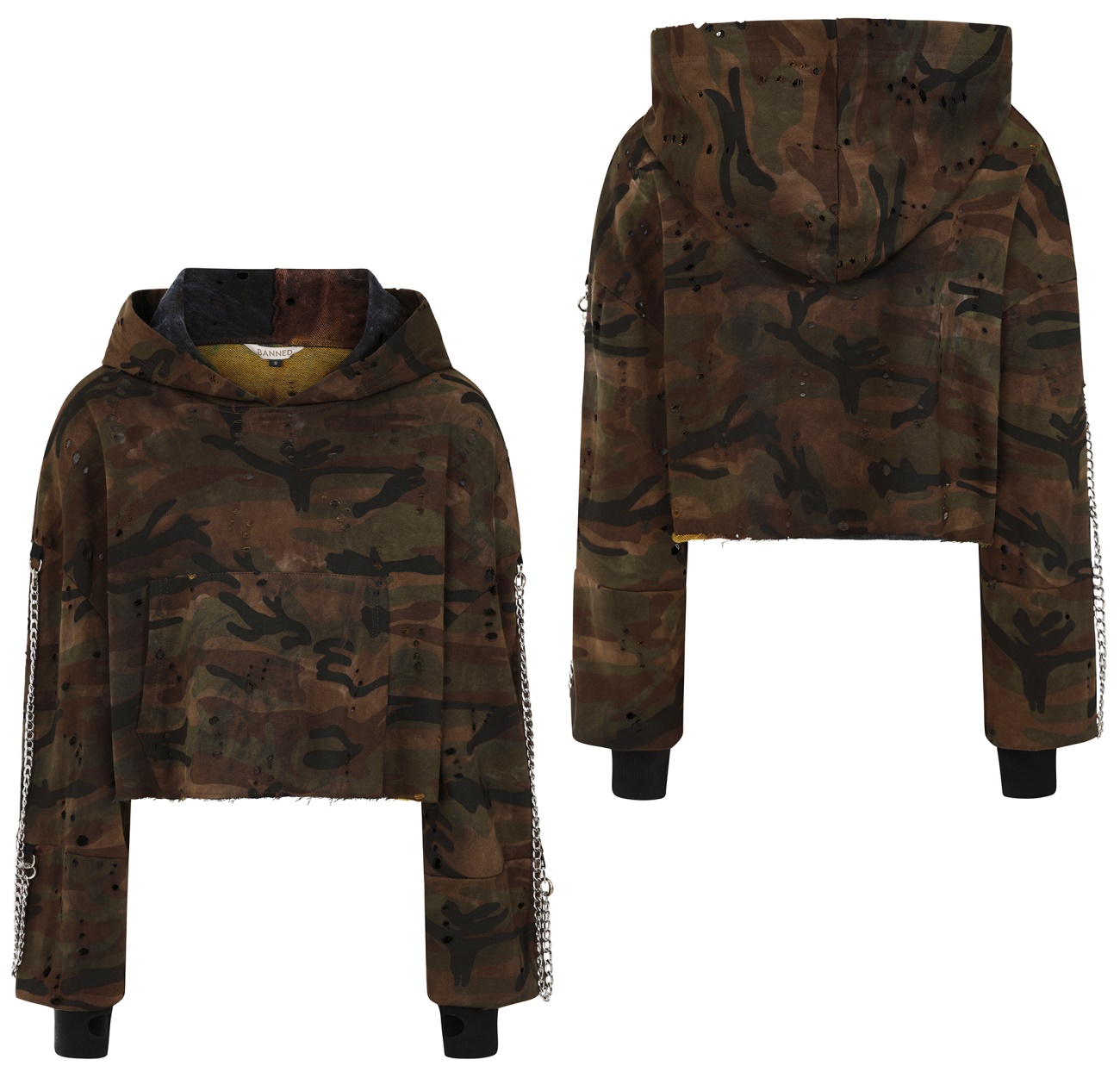 Camouflage Hoodie von Banned mit trendigen Used-Look-Details und charakteristische Kettendetails an den Ärmeln. Er kombiniert dunkle Grunge-Ästhetik mit Military-Flair. Perfekt für alternativen Streetstyle.