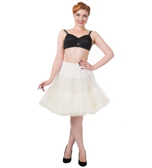 Klassischer Petticoat von Banned, 2-lagig und an den Enden weich eingefasst,flexibler Gummibund. Der weiche Petticoat gibt deinem Kleid die perfekte Form und gehört in jeden Rockabella Kleiderschrank!